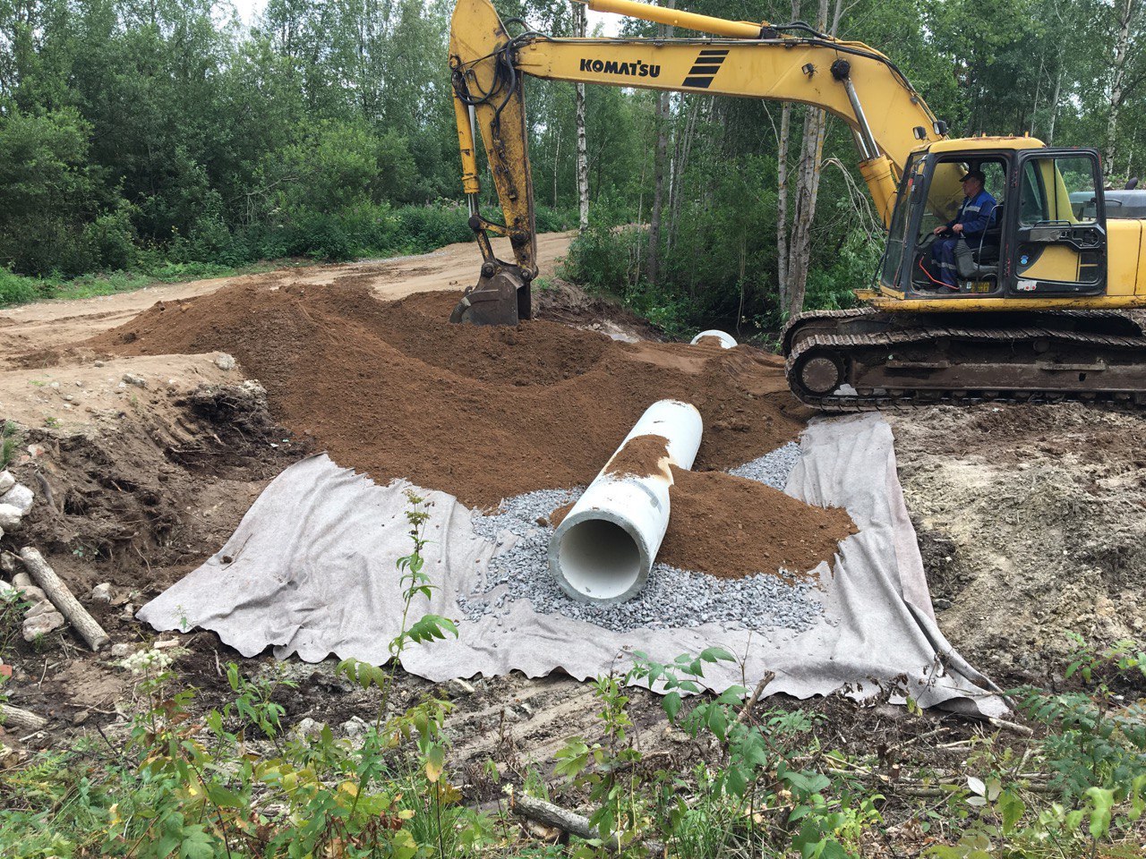На объекте сконструированы 5 переездов по технологии: геотекстиль, подушка из щебня песок/пгс.